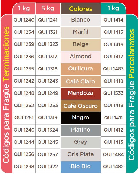 FRAGUE PORCELANATO Y CERAMICA COLORES 1KG WEBER